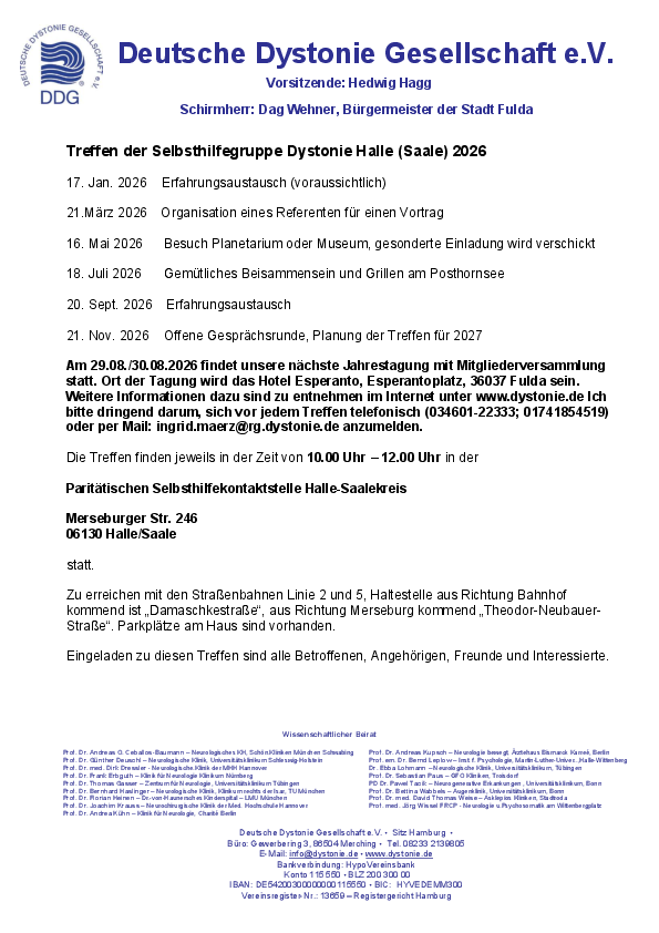 Treffen der Selbsthilfegruppe Dystonie Halle (Saale) 2026